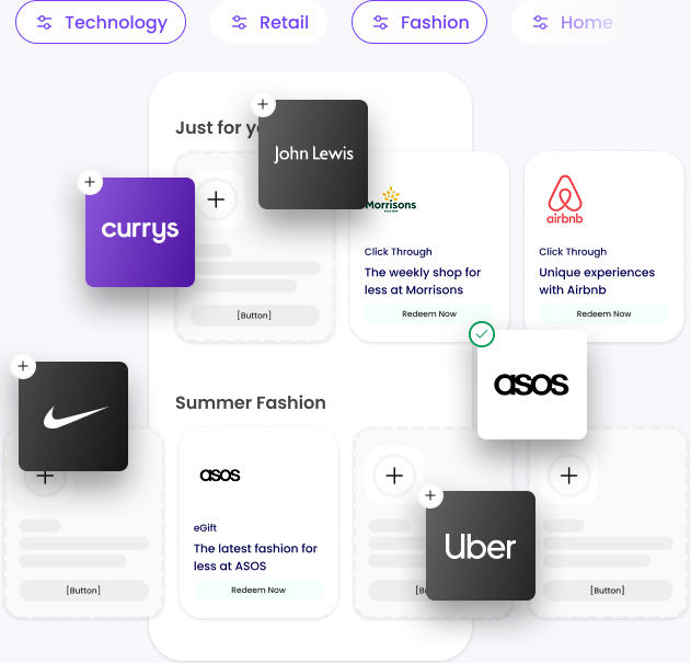 Grow faster by connecting with a network of trusted brands. Partner Marketing lets you plug into collaborative reward campaigns, giving customers access to perks beyond your own catalogue. Whether through high-street names or hand-picked partners, this model boosts brand exposure, drives engagement, and delivers added value that keeps customers coming back.